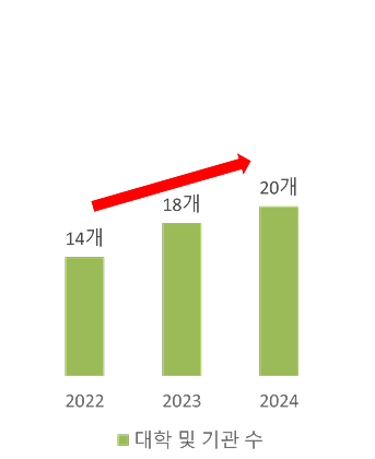 1차년도(2023) 물리 단일분야로 진행된 MSC(Math, Science, Computer) 경진대회를 2차년도(2024)에는 수학을 포함한 2개 분야(일반물리학, 대학수학)로 확대하여 개최하였으며, 참여 학생 수가 34명에 서 68명으로 증가함 |